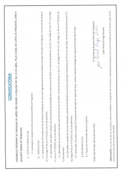Informamos a população de que a próxima sessão da Assembleia de Freguesia terá lugar no dia 23 de abril (quinta-feira)